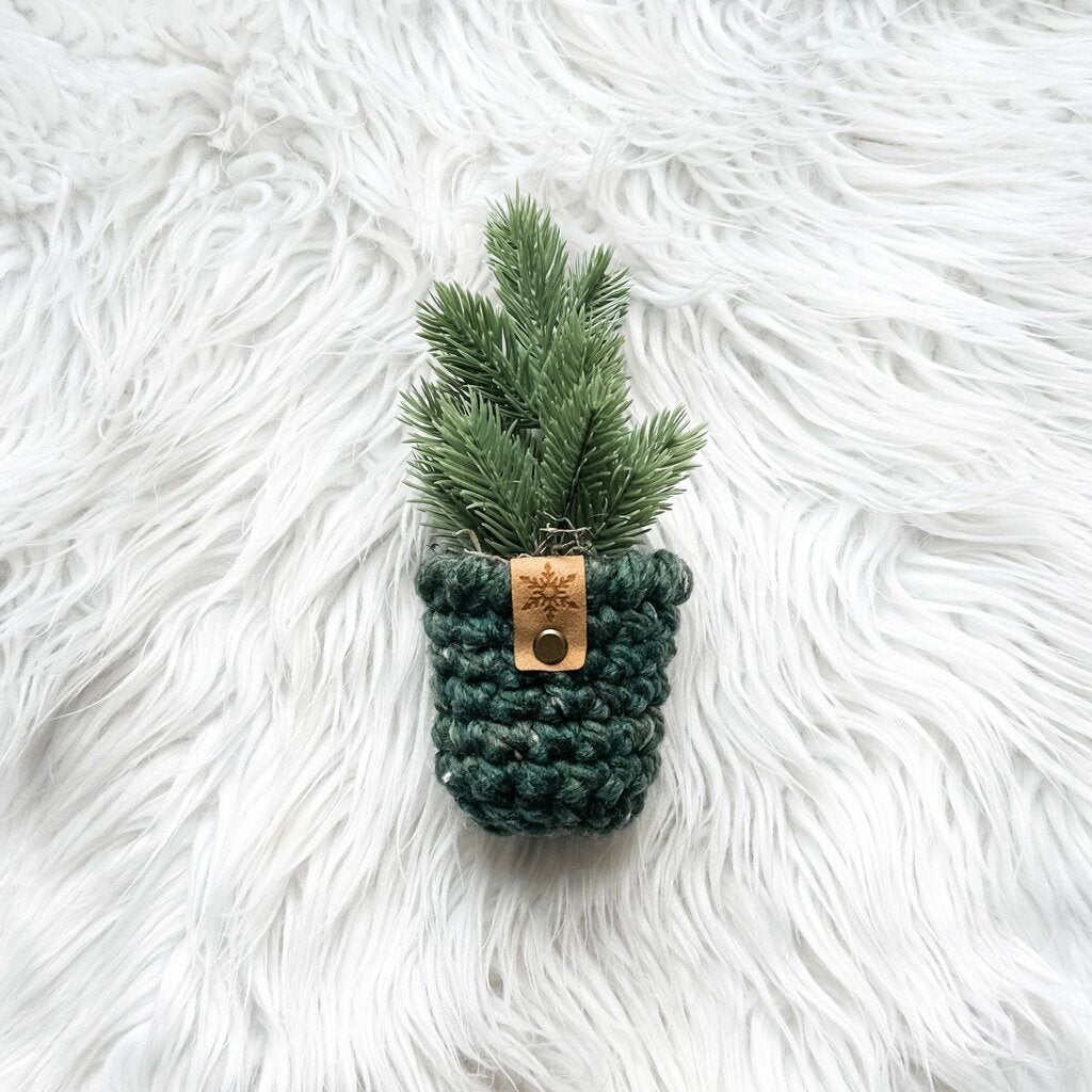 Adorable faux Christmas tree in a handmade crochet plant cozy. Each plant cozy is lightly stuffed around the top with...