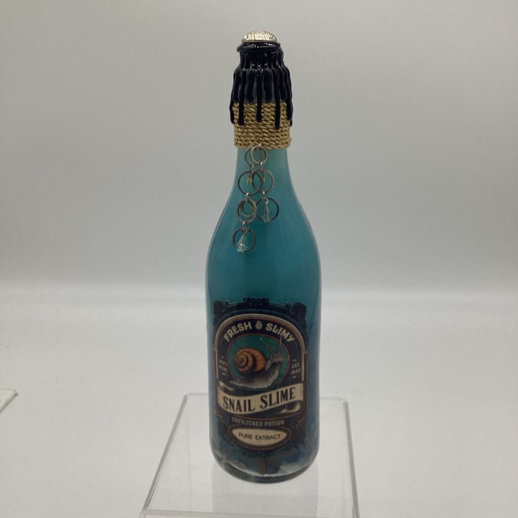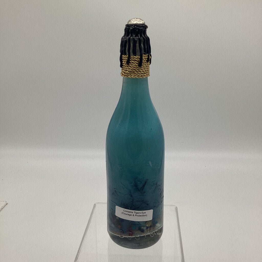 Decorative One-of-a-kind Glass Potion Bottle. Contains Tigers Eye and Shells. Bottle is sealed. Do not consume.
