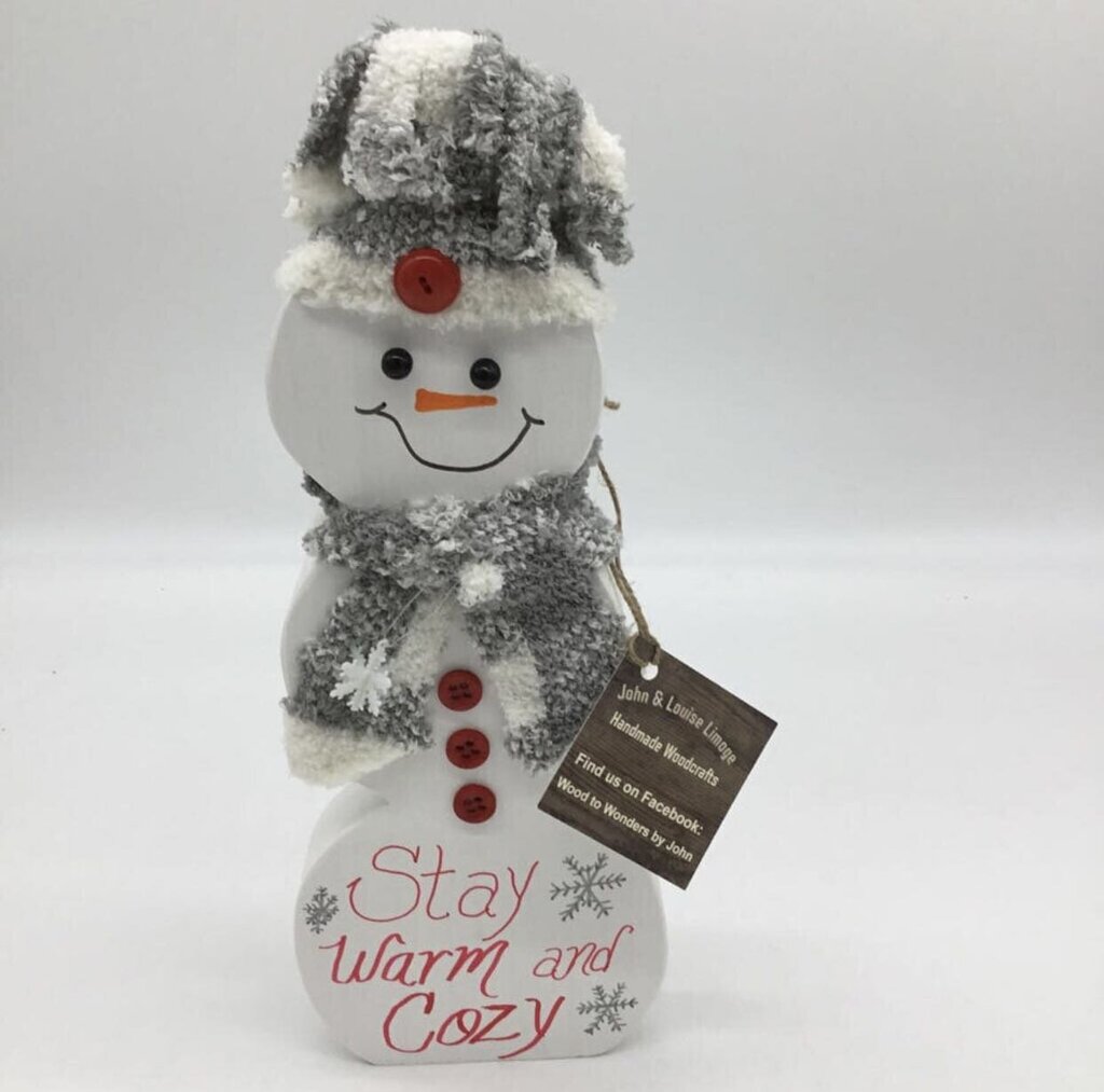 Snowman- Warm & Cozy/Round John Limoge Handmade Woodcrafts Share Deel Messenger Email Low Stock Snowman- Warm & Cozy/Round John Limoge Handmade Woodcrafts Share Deel Messenger Email Product form This item is only available for in-store pickup. SEASONAL DECOR Free pickup in store! Free pickup in store! Size Approx. 14 1/2" Tall ColorWhite, grey, red Condition New $22.00 Quantity Add to cart