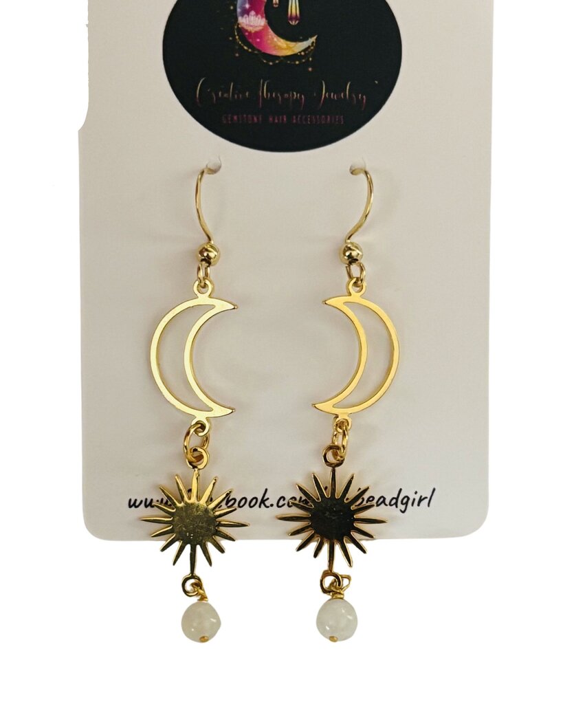 Stainless steel gold plated moon and sun citrine Creative Therapy Jewelry & Gemstone Hair Accessories Share Deel Messenger Email Low Stock Stainless steel gold plated moon and sun citrine Creative Therapy Jewelry & Gemstone Hair Accessories Share Deel Messenger Email Product form This item is only available for in-store pickup. EARRINGS - Earrings Free pickup in store! Free pickup in store! $25.00 Quantity Add to cart