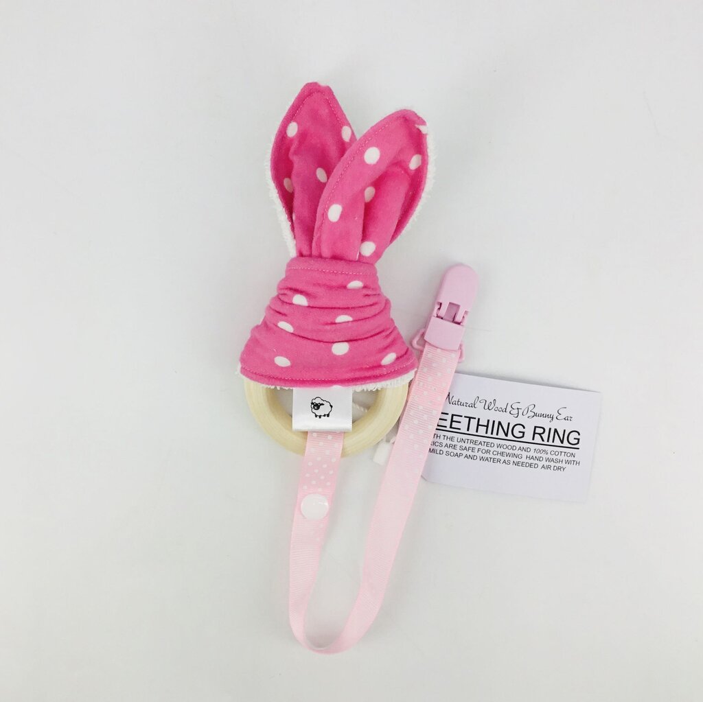Teething Ring BabySnuggz Share Deel Messenger Email Teething Ring BabySnuggz Share Deel Messenger Email Product form BABY GEAR - Teethers | SKU: AT7WFY Free pickup in store! Free pickup in store! Size Approx 18" long with wooden ring & strap Color Pink Polka Dot Condition New $18.00 Quantity Add to cart