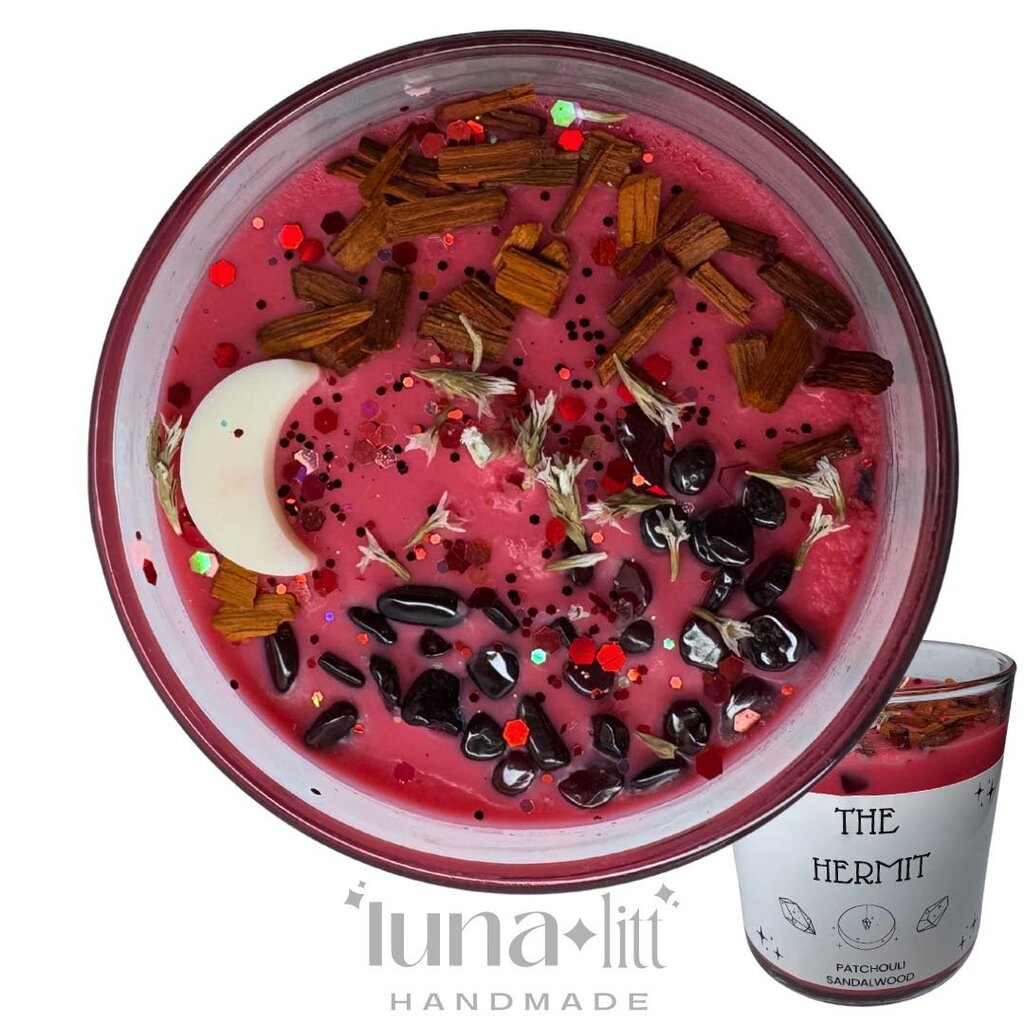 Inspired by The Hermit tarot card, this handmade soy wax candle embodies solitude, wisdom, and inner guidance. With a grounding blend of patchouli and sandalwood, this candle creates a warm, meditative atmosphere that encourages deep reflection and soul-searching—perfect for moments of introspection, journaling, or quiet retreat.