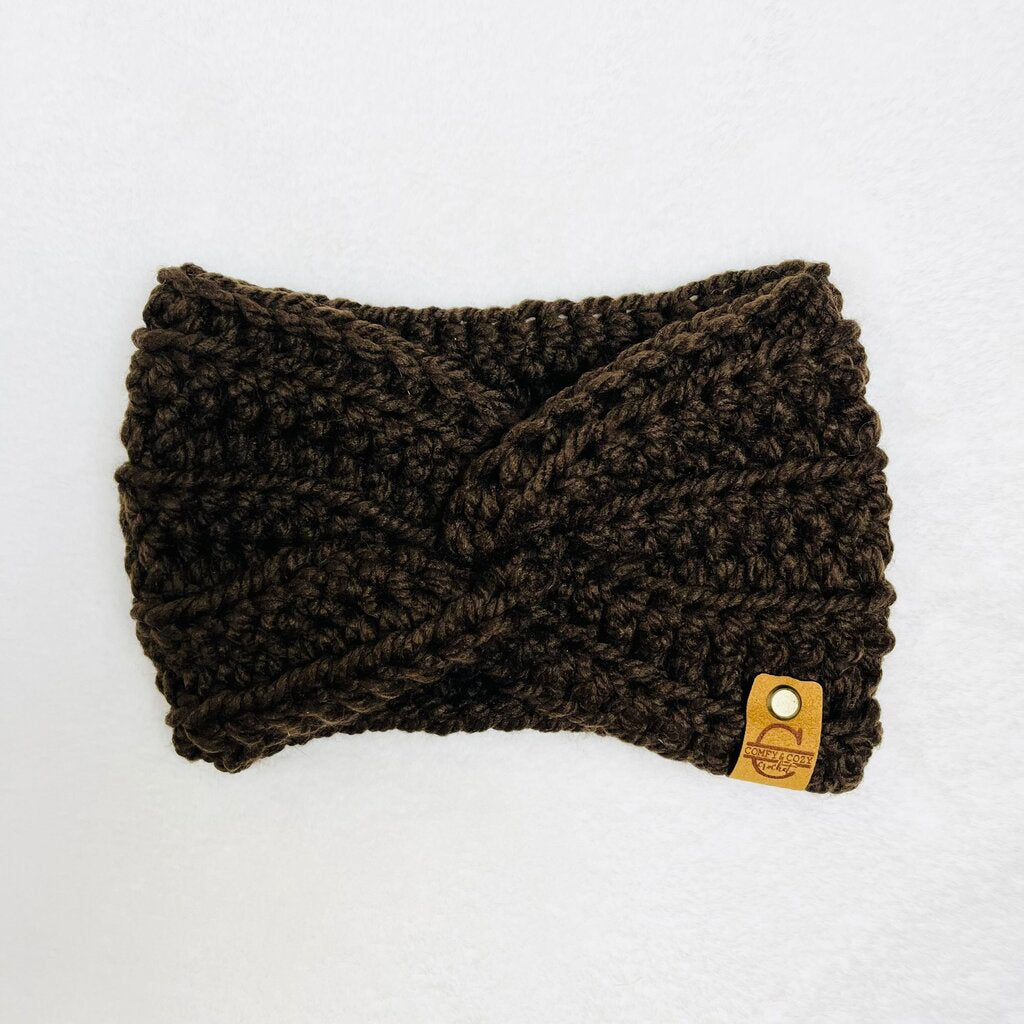 Crochet winter headband/ear warmer made with acrylic yarn. Machine wash gentle. Lay flat or tumble dry low heat.