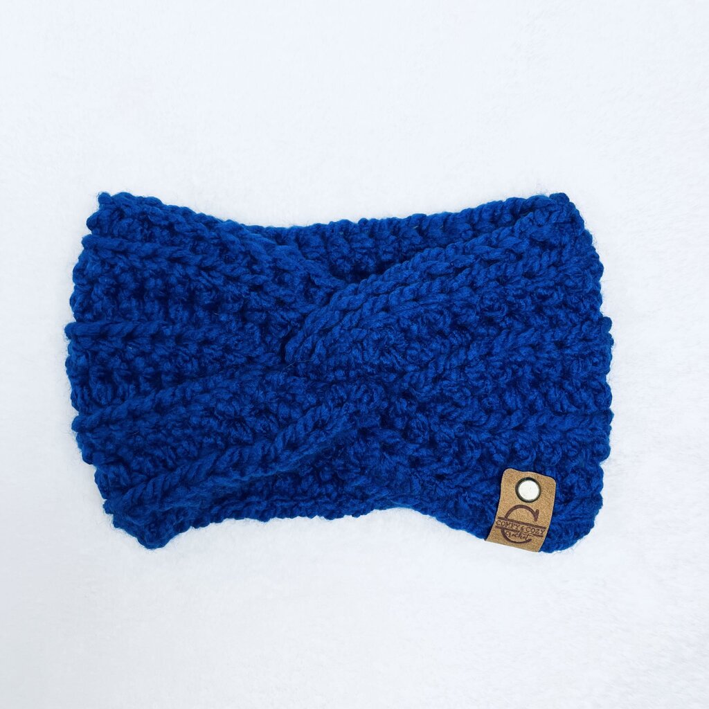 Crochet winter headband/ear warmer made with acrylic yarn. Machine wash gentle. Lay flat or tumble dry low heat.