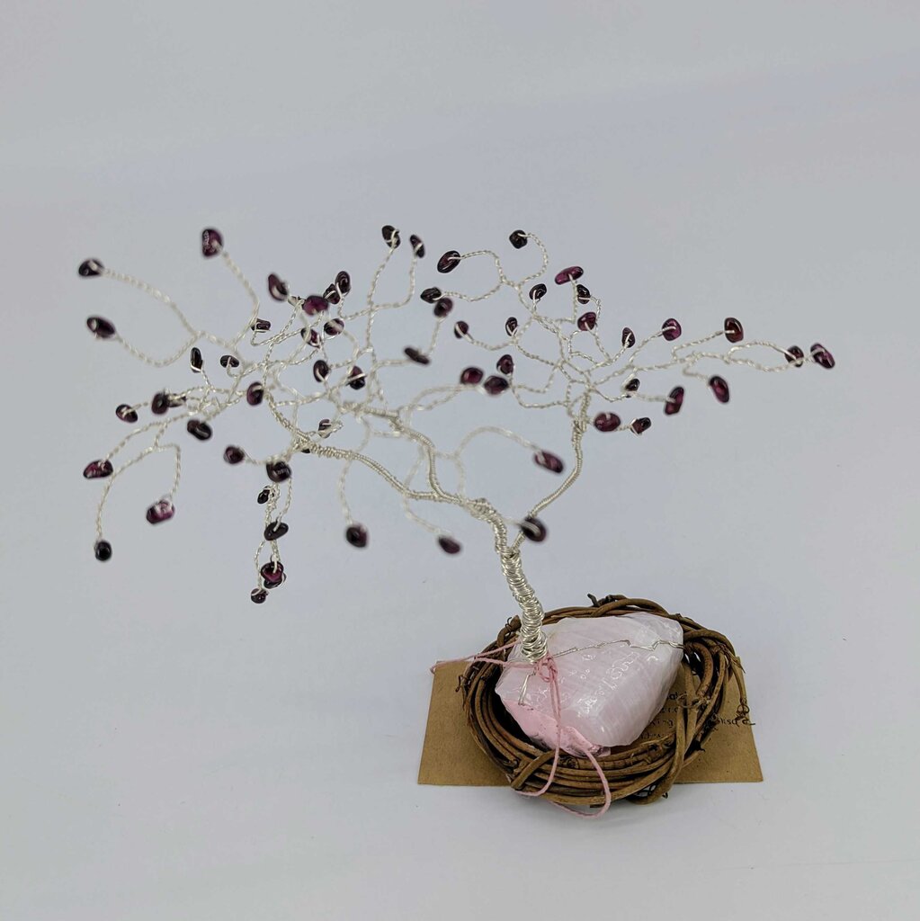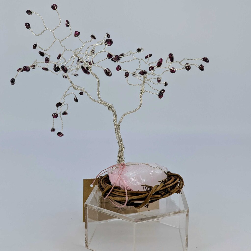 Twisted Wire and Gemstone Tree: Garnet on Pink Calcite