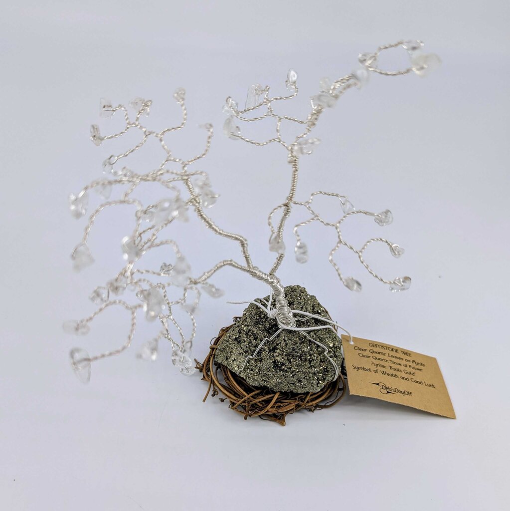 Twisted Wire and Gemstone Tree: Pyrite/Clear Quartz