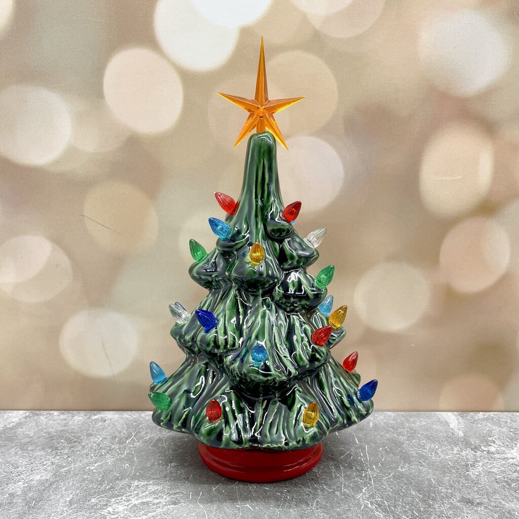 Hand Painted Kiln Fired Ceramics. Measurements: 7" H x 5" W Comes with multi-colored plastic lights and battery operated led...