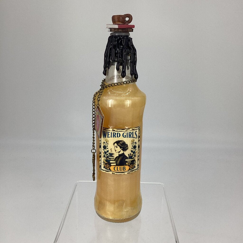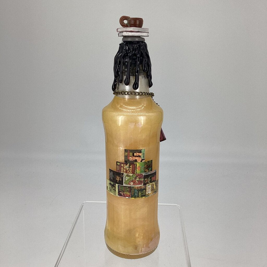 Decorative one-of-a-kind Potion Bottle. Contains Clear Quartz. Swirling action when shaken. Bottle is sealed. DO NOT consume.