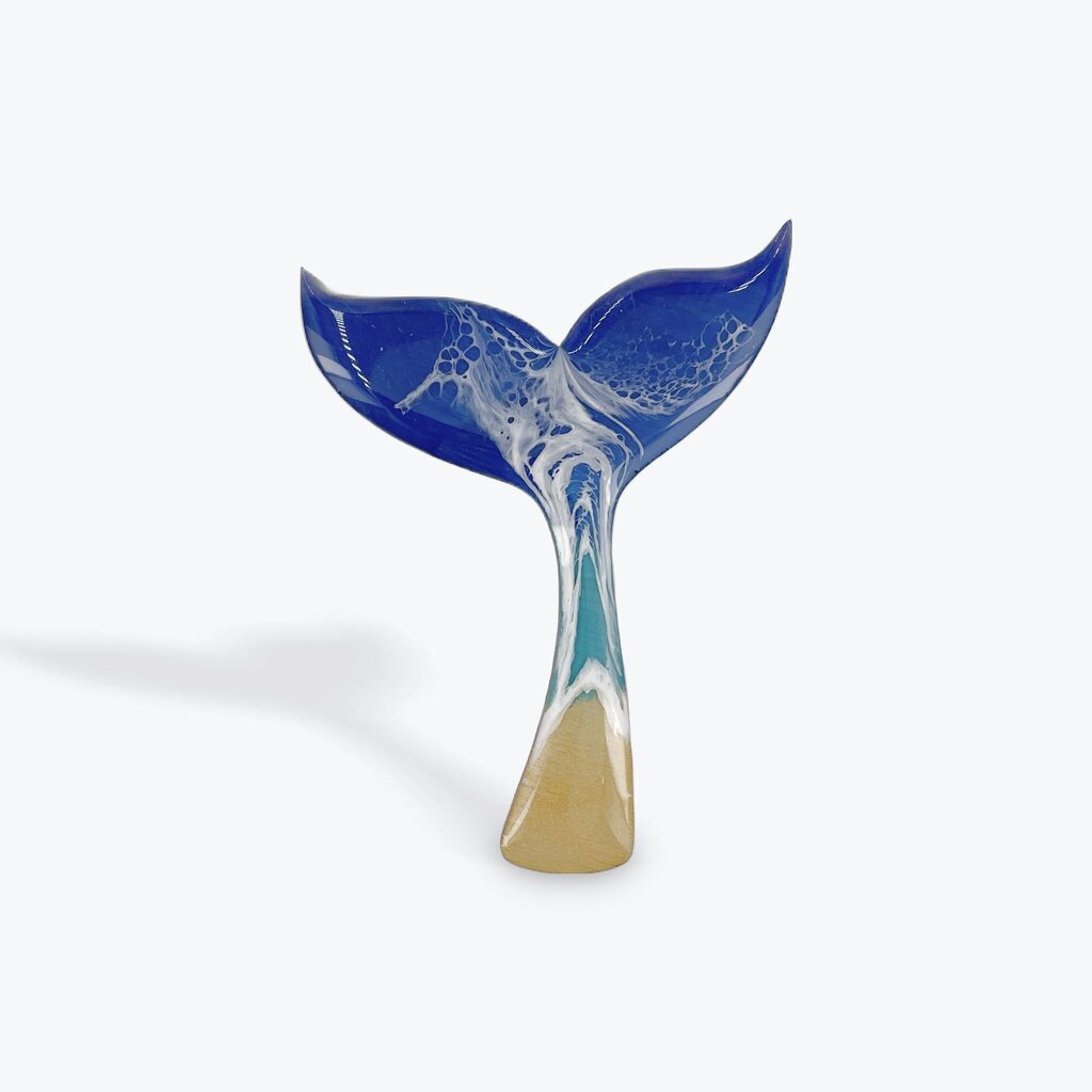 Appx 3" whale tail shaped wood and resin refrigerator magnet. Coloration will vary