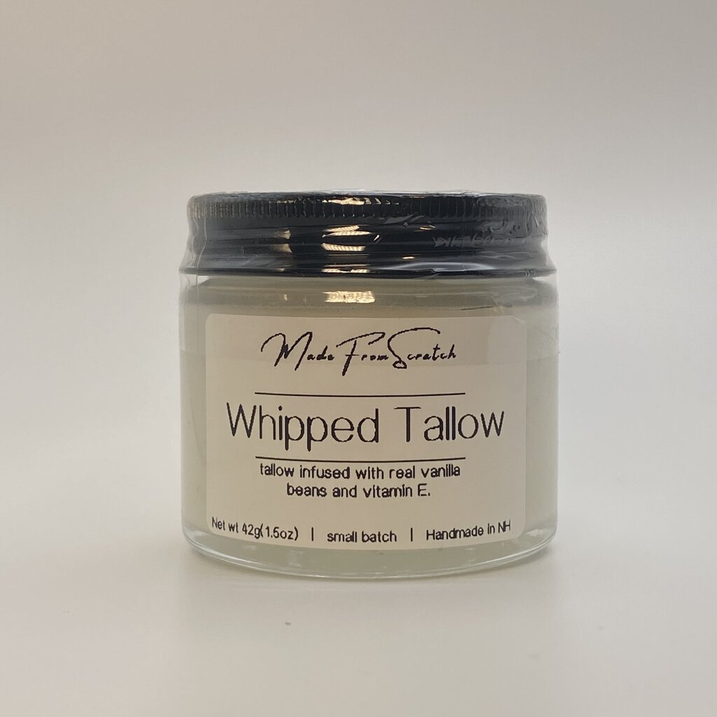 whipped tallow slow infused with real vanilla beans and vitamin e