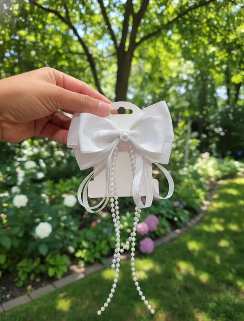 White Bow Hair Clip with Pearls