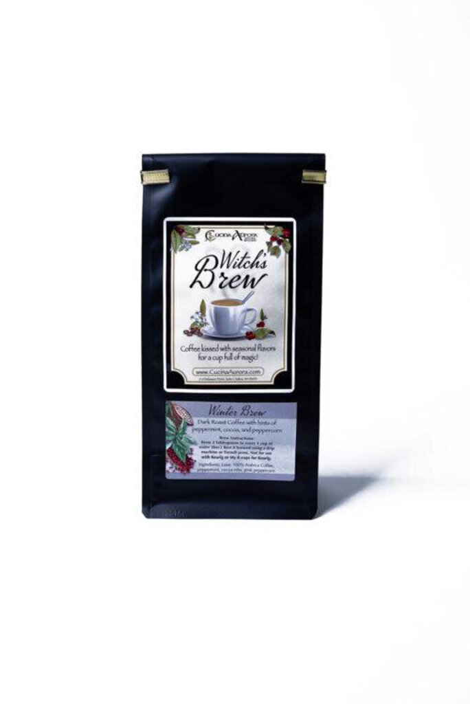 *in Stock only in Season Nov-Feb* This Winter Brew is simple bliss with Dark Roast Coffee ground fresh with cocoa nibs, peppermint leaves and a pinch of pink peppercorn. 12oz resealable package Fresh ground in small batches from locally roasted, ethically sourced coffee roasters her in NH. Our coffee is made by grinding the highest quality Guatemalan coffee beans with whole ingredients like dark cocoa nibs and peppermint leaves. No artificial flavors here! Just a hint of seasonal flavors with nothing fake!