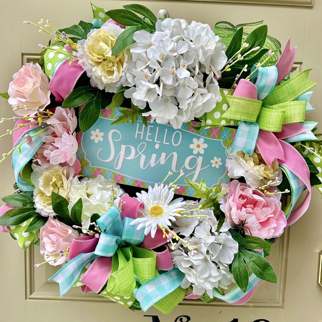 Wreath, Hello Spring XL Floral Front Door Wreath, for Easter or Spring