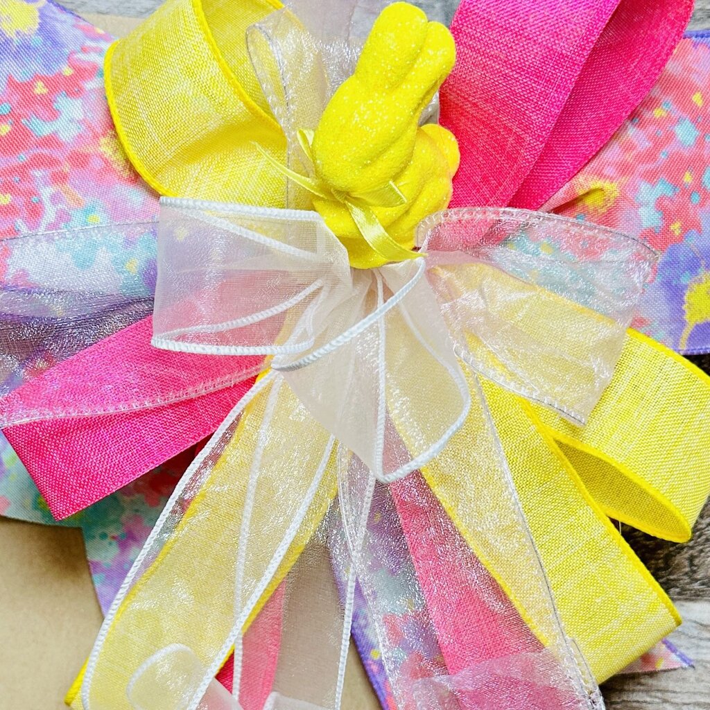 XL Easter Bow with Yellow Bunny, Handmade Large Ribbon Bow for Easter Basket, Easter Decor, Wreath, Door Hanger or Home Decor