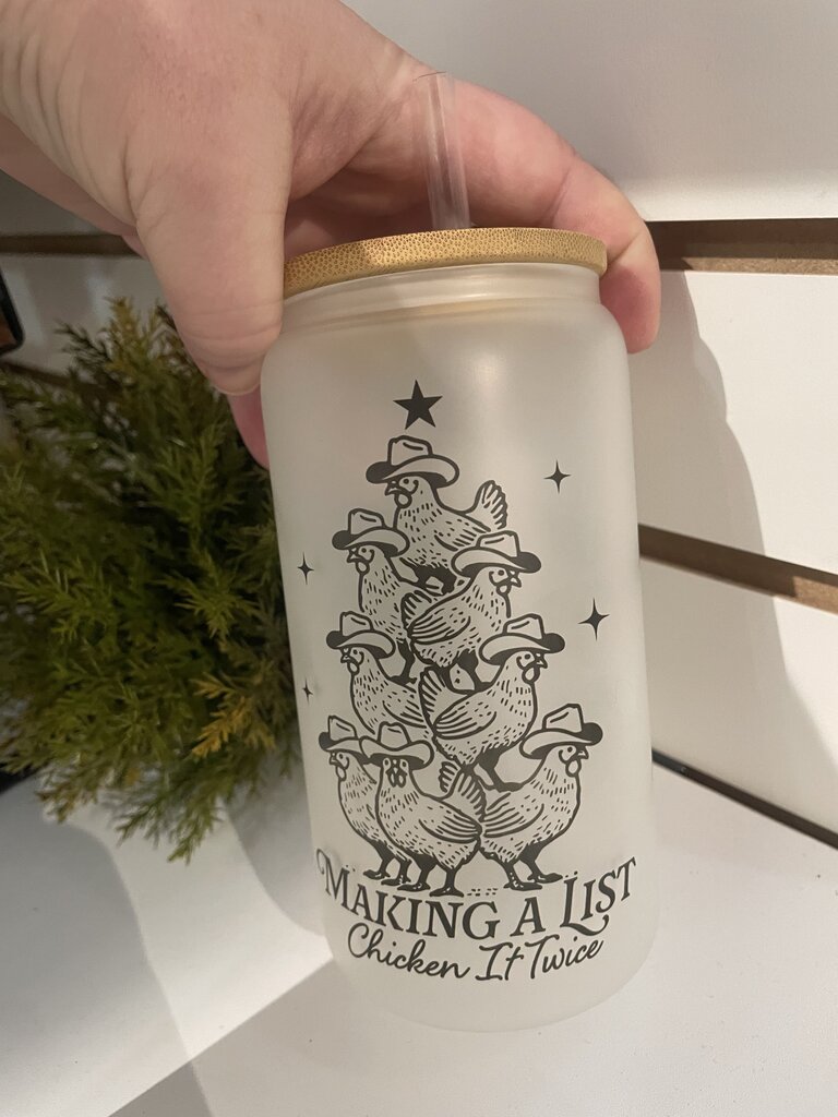 Xmas frosted glass - chicken it twice Mama Hen Makes Share Deel Messenger Email Xmas frosted glass - chicken it twice Mama Hen Makes Share Deel Messenger Email Product form This item is only available for in-store pickup. GLASSES Free pickup in store! Free pickup in store! Size 16oz Colorblack Condition New $20.00 Quantity Add to cart
